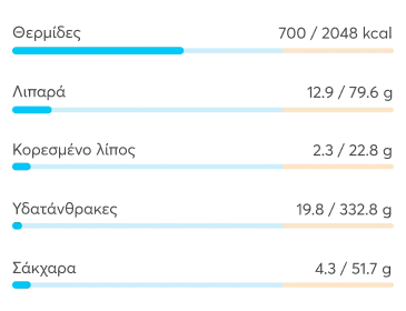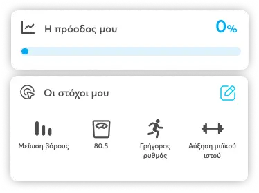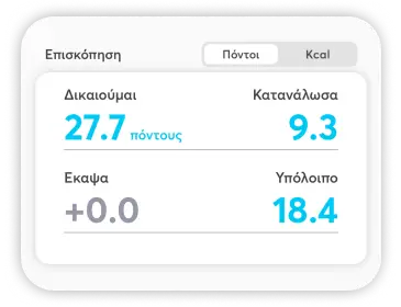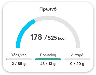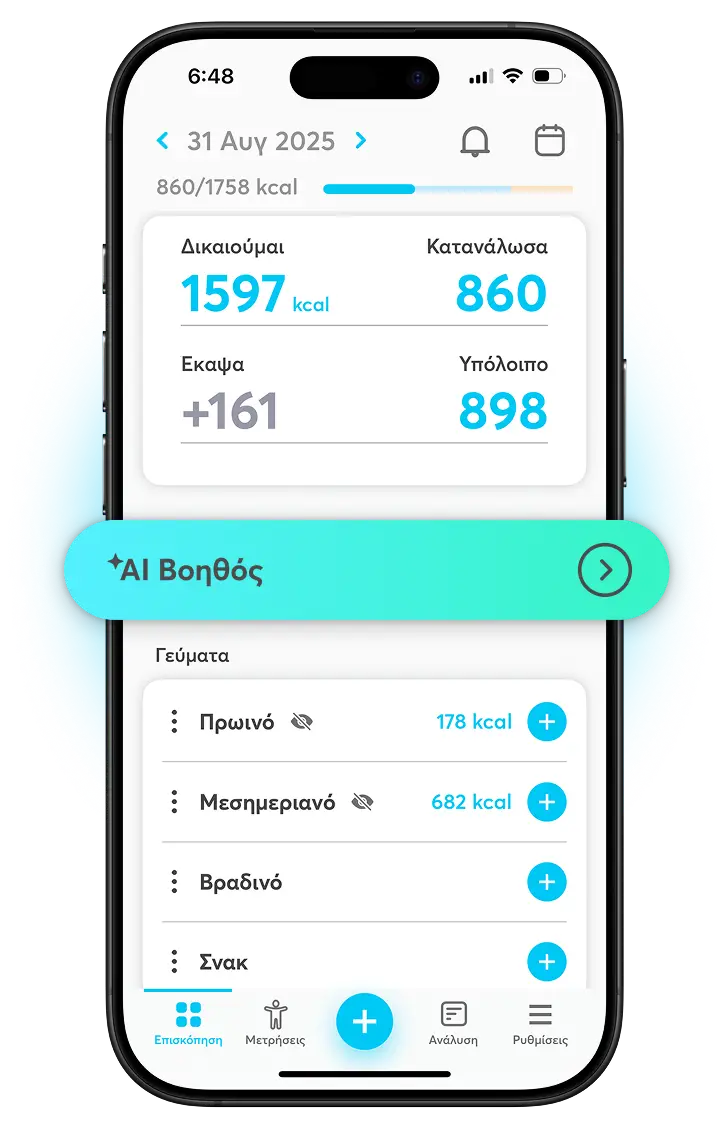 Ο θερμιδικός σου στόχος υπολογίζεται εξατομικευμένα βάσει βάρους, ηλικίας, φύλου και δραστηριότητας. Εναλλακτικά μπορείς να ορίσεις τον δικό σου στόχο