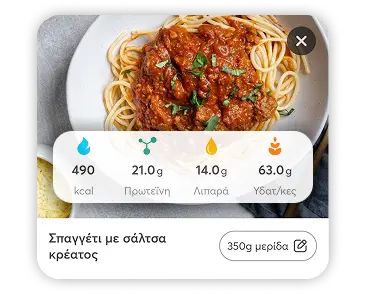 Βγάλε μία φωτογραφία και δες τη σύσταση του πιάτου σου. Εναλλακτικά φωτογράφησε οποιαδήποτε ετικέτα τροφίμου για αυτόματη καταχώρηση.