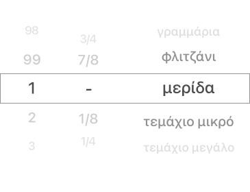 Καταχώρησε τρόφιμα με ακρίβεια σε μερίδες, φλιτζάνια, παλάμες ή άλλες πρακτικές μονάδες, χωρίς ζυγαριά